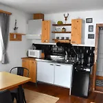 K dispozici je zde také TV s plochou obrazovkou se satelitními kanály, kuchyňka a pohovka, dále rychlovarná konvice, chladnička a kuchyňské nádobí. Apartmán nabízí 3 ložnic a výhled na hory.